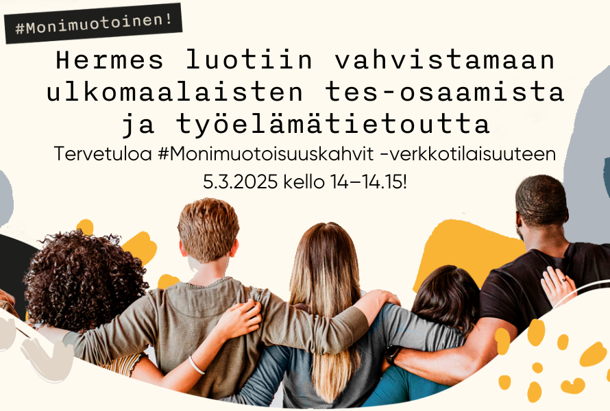 Hermes luotiin vahvistamaan ulkomaalaisten tes-osaamista ja työelämätietoutta. - #Monimuotoisuuskahvit verkkotilaisuus 5.3.2025